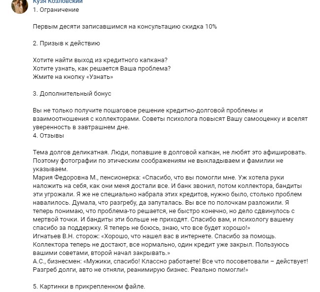 Продающий текст ученика. Написан в рамках бесплатного курса в моем паблике. Урок за уроком Кузя Козловский выполняла(да, она) все задания. Посмотрите как это было и что получилось