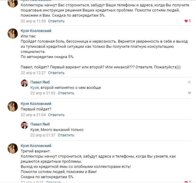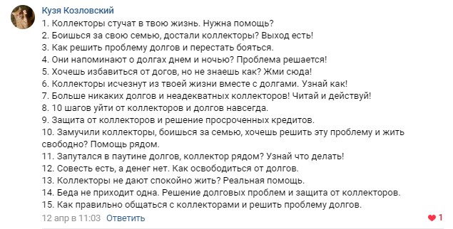 Соседям названивают, требуют передать, что такой-то из квартиры 5 столько-то должен. Люди в доме перестали здороваться, неадекватно реагируют на Петькиного коллегу. Коллектора залили клеем «Момент» замочную скважину и пришлось менять замки. Короче, кошмар по-полной. Петька боится того же.