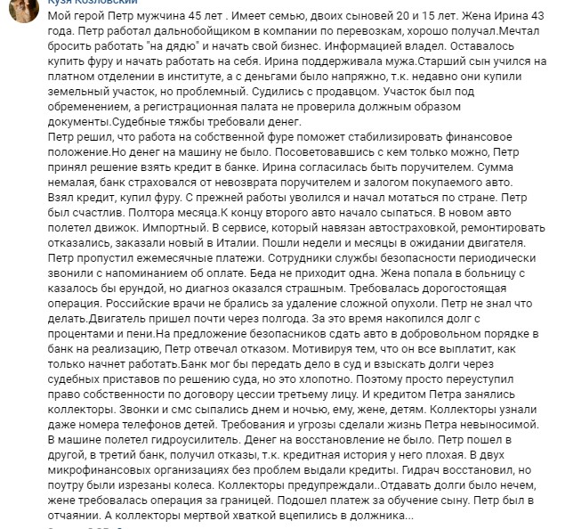 Тема долгов деликатная. Люди, попавшие в долговой капкан, не любят это афишировать. Поэтому фотографии по этическим соображениям не выкладываем и фамилии не указываем.