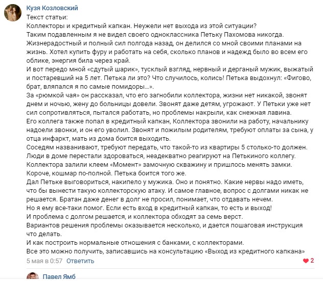 Но я ему все-таки помог. Если есть вход в кредитный капкан, то есть и выход!